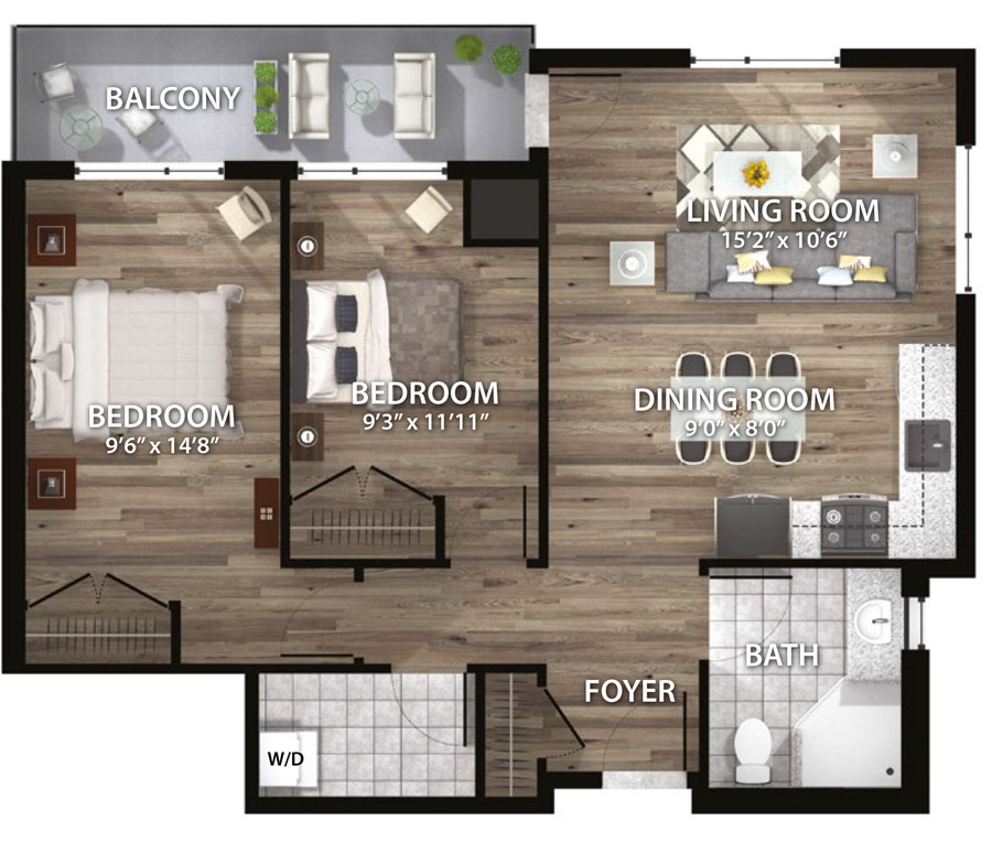 2 BEDROOM | 896 SQ. FT.